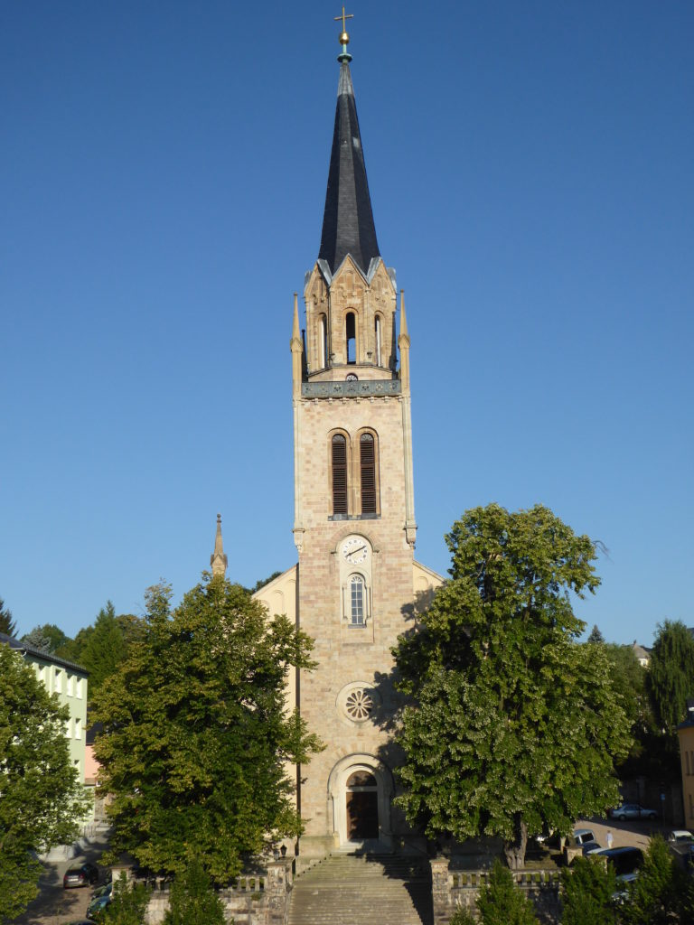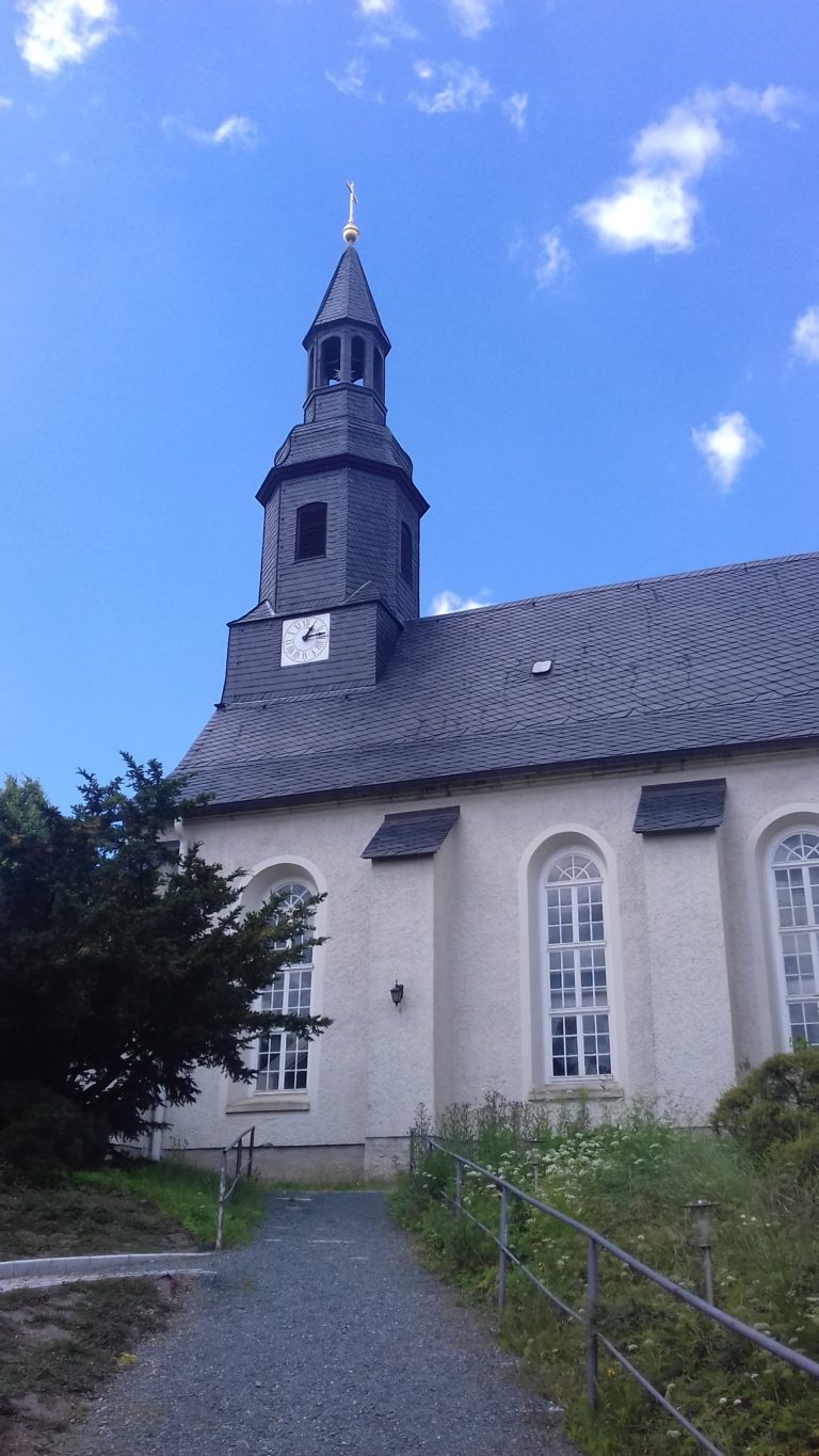 Kirchen im Kirchenbezirk Vogtland Ev.-Luth. St.-Johannis-Kirchgemeinde Plauen Die Johanniskirche zu Plauen ist die Urkirche des Vogtlandes. Sie markiert bis heute als Ephoralkirche das kirchliche Zentrum des sächsischen […] weiterlesen Ev.-Luth. St.-Laurentius-Kirchgemeinde Auerbach Willkommen in Gottes Kirche! Willkommen in unserer Kirche! Willkommen in Deiner Kirche! Alle sind willkommen in der St. Laurentiuskirche! Wir […] weiterlesen Ev.-Luth. Dreifaltigkeitskirchgemeinde Jocketa-Pöhl Herzlich Willkommen in unserer Dreifaltigkeitskirche Jocketa-Pöhl. Diese Kirche ist hier an dieser Stelle in den Jahren 1962-1965 im Stil des […] weiterlesen Ev.-Luth. Johanneskirchgemeinde Mißlareuth … weiterlesen Ev.-Luth. Kirchgemeinde Bad Brambach-Schönberg weiterlesen Ev.-Luth. Kirchgemeinde Bad Elster St. Trinitatiskirche Bad Elster Die Kirche wurde unmittelbar neben einem Vorgängerbau – der alten Dorfkirche St Peter und Paul – […] weiterlesen Ev.-Luth. Kirchgemeinde Bergen-Werda Werda Kirche Werda Kanzel Bergen Altar Bergen Glockenweihe Werda Kirche Bergen innen weiterlesen Ev.-Luth. Kirchgemeinde Ebersgrün Kirche Ebersgrün Die Dorfkirche von Ebersgrün ist der Hl. Maria Magdalena gewidmet. Im Volksmund hat sich aber der Name „Kreuzkirche“ […] weiterlesen Ev.-Luth. Kirchgemeinde Ellefeld Luther Kirche Ellefeld Die Lutherkirche wurde 1924-1926 unter der Leitung von Architekt Rudolf Kolbe, Dresden gebaut und am 17.Oktober […] weiterlesen Kirchen der Ev.-Luth. Kirchgemeinde Falkenstein-Grünbach Kirche ‚Zum Heiligen Kreuz Falkenstein – Kapelle Grünbach – Gemeindesaal Neustadt, Dorfstadt und Oberlauterbach weiterlesen Ev.-Luth. Kirchgemeinde Hammerbrücke Hammerbrücke Die Kirchgemeinde Hammerbrücke entstand am 1.1.2007 aus den ehemaligen Schwesterkirchgemeinden Hammerbrücke, Rautenkranz und Tannenbergsthal. Sie ist identisch mit der […] weiterlesen Ev.-Luth. Kirchgemeinde Jößnitz Kirche Jößnitz – Besonderheiten innen Taufstein – bemalt von Benedikt Richter Epitaph – Lukas Cranach d. Ä. (Werkstattarbeit?) weiterlesen Ev.-Luth. Kirchgemeinde Klingenthal weiterlesen Ev.-Luth. Kirchgemeinde Marieney-Wohlbach weiterlesen Ev.-Luth. Kirchgemeinde Markneukirchen weiterlesen Ev.-Luth. Kirchgemeinde Mühltroff-Langenbach Mühltroff Schlosskirche Mühltroff Mühltroff hatte ursprünglich zwei Kirchen, eine Stadtkirche und die heute noch erhaltene Schlosskirche. Nachdem die Stadtkirche im […] weiterlesen Ev.-Luth. Kirchgemeinde Mylau Ev.-Luth. Stadtkirche Mylau Außenaufnahme Innenaufnahmen – 1 davon mit Silbermannorgel, 1 mit Altarplatz, Taufstein und 3 großen Fenstern Die Fenster wurden […] weiterlesen Ev.-Luth. Kirchgemeinde Netzschkau Schlosskirche Netzschkau Die Schlosskirche in Netzschkau wurde nach knapp 2½-jähriger Bauzeit am 18. Oktober 1840 geweiht und ist im Stil […] weiterlesen Ev.-Luth. Kirchgemeinde Neumark Wir gehören innerhalb der sächsischen Landeskirche zum Kirchenbezirk Vogtland und sind mit den Gemeinden Reichenbach und Mylau zu einem Schwesterkirchenverhältnis […] weiterlesen Ev.-Luth. Kirchgemeinde Rebesgrün-Reumtengrün Reumtengrün durch großen Einsatz vieler Gemeindeglieder, unter Leitung von Pfarrer Schubert, konnte dieses Gebäude 1972 fertig gestellt werden. Seit 2007 […] weiterlesen Ev.-Luth. Kirchgemeinde Reichenbach Die Peter-Paul-Kirche wurde 1225 erstmalig erwähnt. Nach einen Stadtbrand 1720 wurde die Peter-Paul-Kirche komplett zerstört. Danach wurde sie wiederaufgebaut und […] weiterlesen Ev.-Luth. Kirchgemeinde Reuth weiterlesen Ev.-Luth. Kirchgemeinde Rosenbach/Vogtl. weiterlesen Ev.-Luth. Kirchgemeinde Rothenkirchen-Wernesgrün weiterlesen Ev.-Luth. Kirchgemeinde Ruppertsgrün Ruppertsgrün – Unsere Kirche und Turm wurden im vergangenen Jahr von außen saniert. Im Kirchenschiff finden sich einige sehr wertvolle […] weiterlesen Ev.-Luth. Kirchgemeinde St. Jakobus im Vogtland St. Jakobus Oelsnitz Schöneck weiterlesen Ev.-Luth. Kirchgemeinde Steinsdorf Kirche Steinsdorf – Besonderheiten Taufstein von Christian Preller (17. Jh.) Altar von Peter Breuer – Schüler von Tilman Riemenschneider (1497) […] weiterlesen Ev.-Luth. Kirchgemeinde Theuma-Altensalz Die Kirche Altensalz ist seit 1214 Ort für Stille und Gebet. Sie wurde als Betstube des Deutschen Ordens 1214 erstmals […] weiterlesen Ev.-Luth. Kirchgemeinde Thierbach-Ranspach-Langenbuch Thierbach Wehrkirche zu Thierbach Erste Erwähnungen gehen etwa auf das Jahr 1000 zurück. Die damalige Wehrkirche diente als Missionsstation deutscher […] weiterlesen Ev.-Luth. Kirchgemeinde Waldkirchen-Irfersgrün Kirche Waldkirchen Die Kirche wurde im Jahr 1265 das erste Mal als Schwesterkirche von Reichenbach erwähnt. Beim Betreten der Kirche […] weiterlesen Ev.-Luth. Kirchspiel Lengenfeld-Plohn-Röthenbach Aegidiuskirche Lengenfeld Die jetzige Aegidiuskirche ist nach dem großen Stadtbrand 1856, dem auch die alte Kirche zum Opfer fiel, erbaut […] weiterlesen Ev.-Luth. Laurentiuskirchgemeinde Elsterberg weiterlesen Ev.-Luth. Lutherkirchgemeinde Plauen Luthergemeinde Plauen 2000 Gemeindeglieder Westteil der Stadt Plauen Lutherkirche und Lutherhaus Lutherkirche Im Jahre 2022 kann die Lutherkirche das 300. […] weiterlesen Ev.-Luth. Markus-Paulus-Kirchgemeinde Plauen Markus Kirche Plauen Paulus Kirche Plauen weiterlesen Ev.-Luth. Paul-Gerhardt-Kirchgemeinde Schnarrtanne-Vogelsgrün Die Kirche Schnarrtanne wurde 1926 erbaut und geweiht. 1909 wurde die Paul-Gerhardt-Kirchgemeinde aus der Kirchgemeinde Auerbach ausgegliedert und ist seitdem eine […] weiterlesen Ev.-Luth. St.-Bartholomäus-Kirchgemeinde Treuen St.-Bartholomäus-Kirche Treuen Die Kirche in ihrer heutigen Gestalt wurde in den Jahren 1808/ 1809 erbaut, nachdem der Vorgängerbau dem großen […] weiterlesen Ev.-Luth. St.-Michaelis-Kirchgemeinde Adorf weiterlesen Ev.-Luth. St.-Michaelis-Kirchgemeinde Limbach weiterlesen Ev.-Luth. St.-Michaelis-Kirchgemeinde Pausa Kirche Pausa Die St.-Mich
