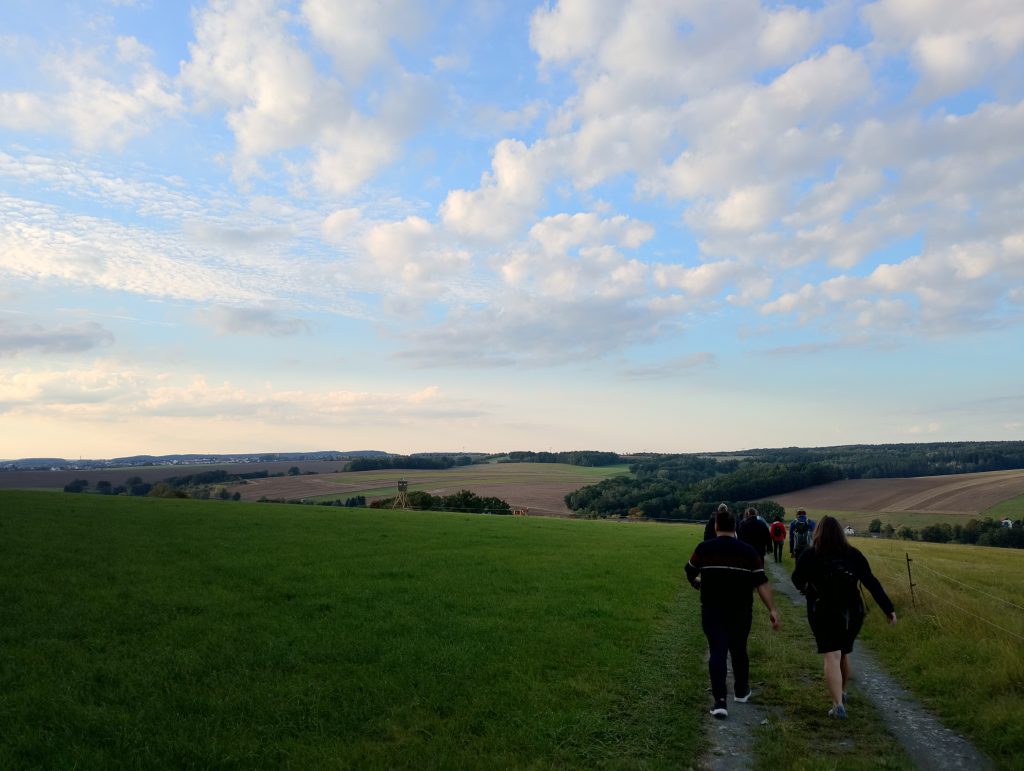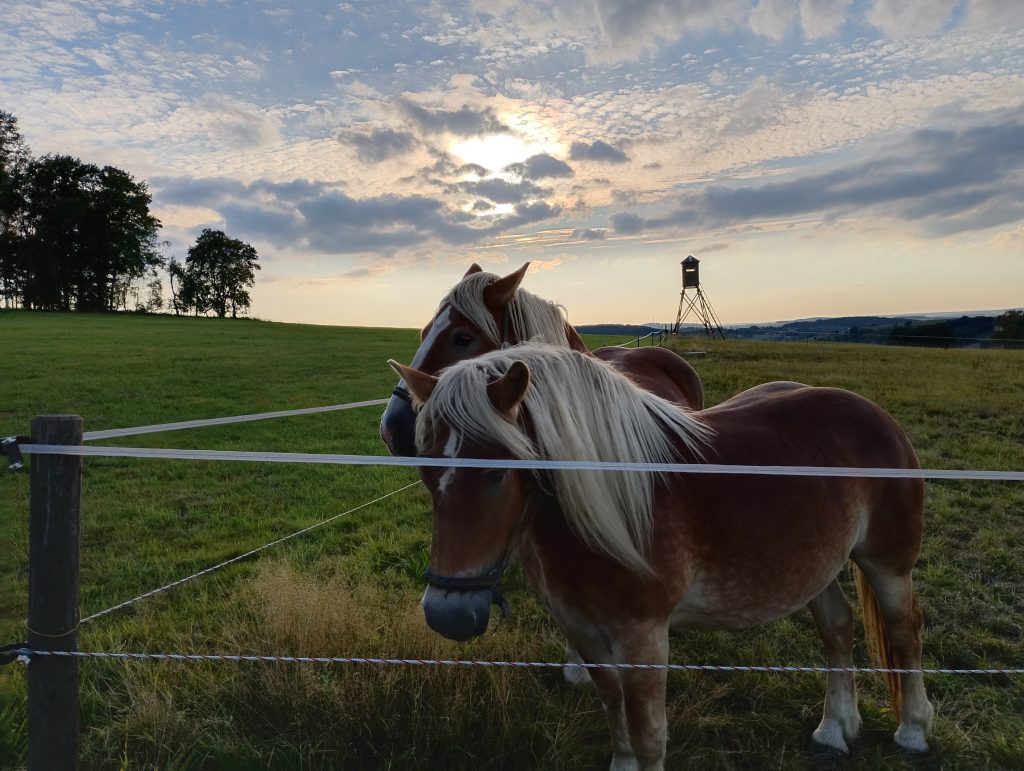 Anschließend ging es über Stock und Stein, vorbei an Weiden in Richtung Oberheinsdorf. Auf dem Weg dorthin wurden wir mit herrlichen Ausblicken belohnt. Begrüßt haben uns auch einige neugierige Tiere.