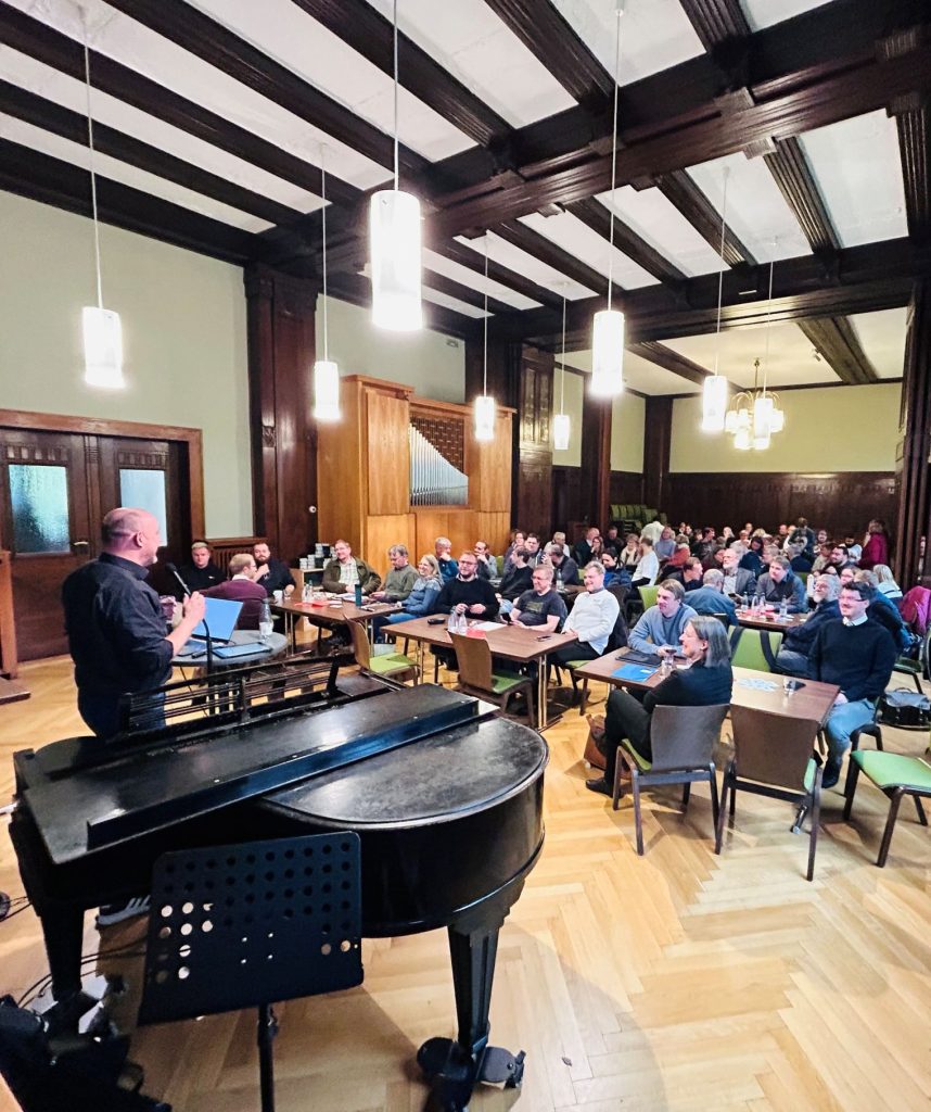 Am 29. Oktober 2025 kamen im Lutherhaus Plauen Pfarrerinnen und Pfarrer, Gemeindepädagoginnen und -pädagogen sowie Kirchenmusikerinnen und Kirchenmusiker zur Ephoralkonferenz des Kirchenbezirks Vogtland zusammen. Die Vorbereitung lag beim ephoralen Leitungsteam und wurde engagiert von den Ephoralsekretärinnen unterstützt, die neben dem Pausenimbiss bereits im Vorfeld Stühle und Tische gestellt und damit wesentlich zum guten Gelingen beigetragen haben.