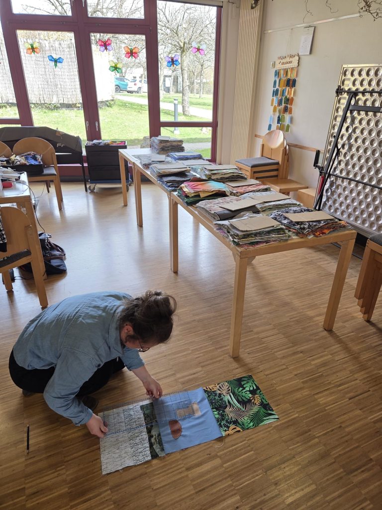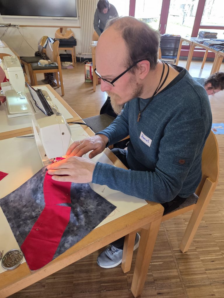 So konnten es die versammelten Kigo-Mitarbeiterinnen, Gemeindepädagog:innen, Erzieherinnen, Lehrerinnen sowie eine Pfarrerin kaum erwarten endlich selbst die Nadel zu schwingen und ihren eigenen Story Bag zu nähen. Dabei war die Zusammenstellung der einzelnen Bildmotive gar nicht so leicht, denn es konnte aus hunderten bunten, phantasievollen Stoffmustern ausgewählt werden.